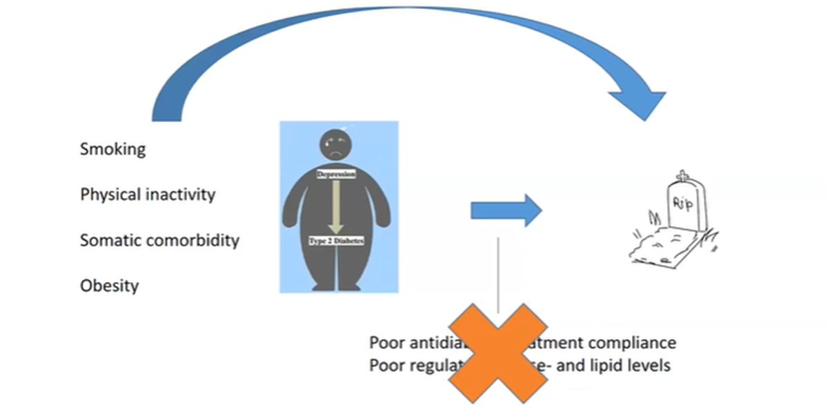 Depression er hyppigt forekommende hos personer med type 2 diabetes. Når personer med type 2 diabetes rammes af en depression, forværres deres prognose betydeligt, da deres risiko for at udvikle diabetesrelaterede komplikationer og for at dø øges markant. Men hvorfor bliver deres prognose egentlig forværret?